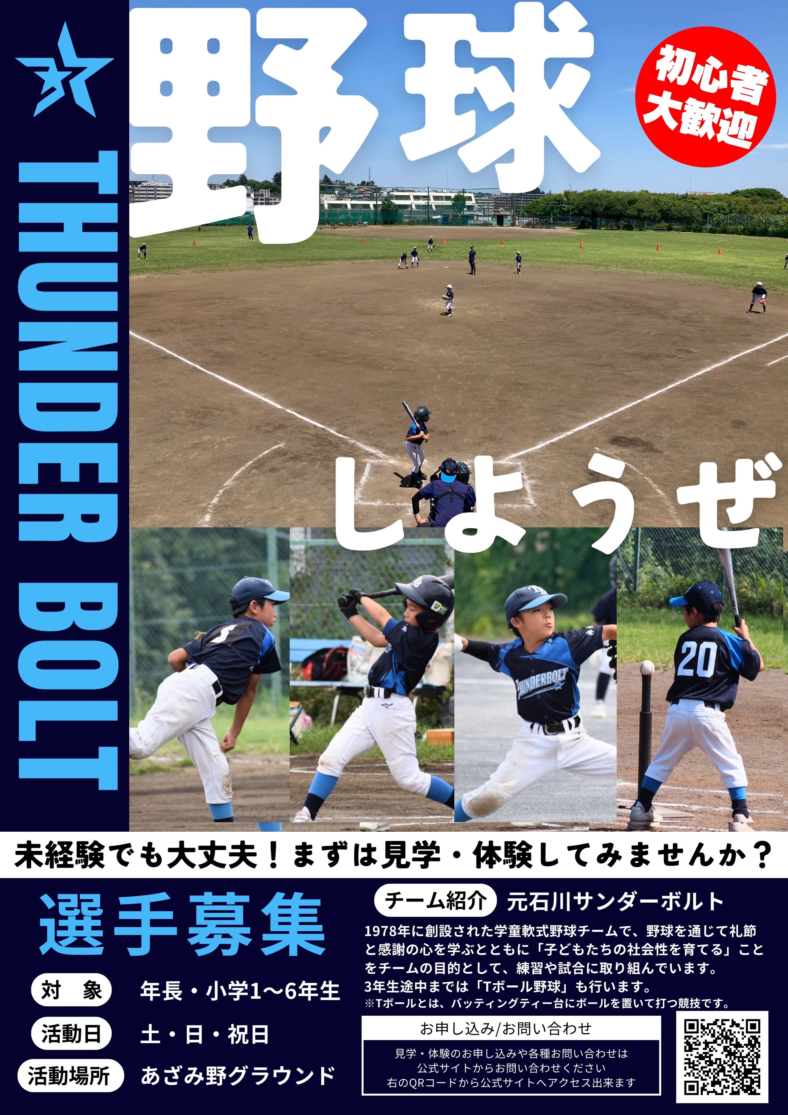 元石川サンダーボルトでは、随時、選手を募集しています。